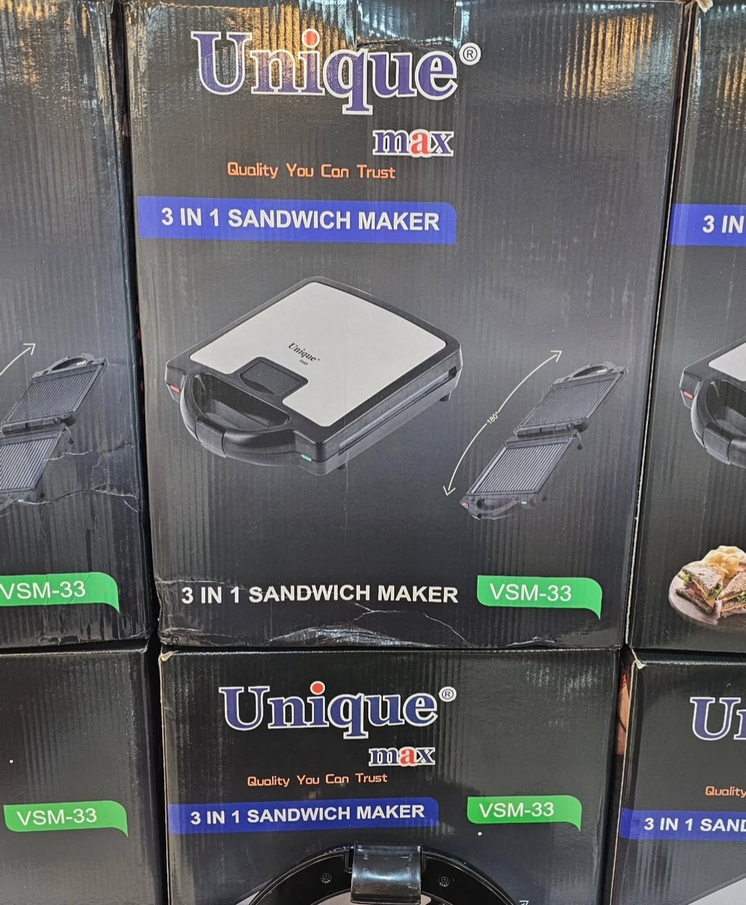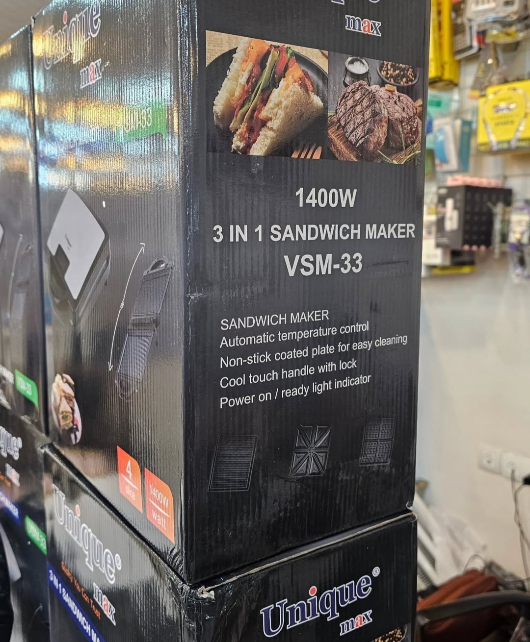 اسنک ساز سه کاره یونیک سایز بزرگ و جادار سه قالب متفاوت : اسنک ، گریل ،وافل با فالبرگ های نچسب و قابل شستشو امکان باز شدن 180 تا 90 درجه